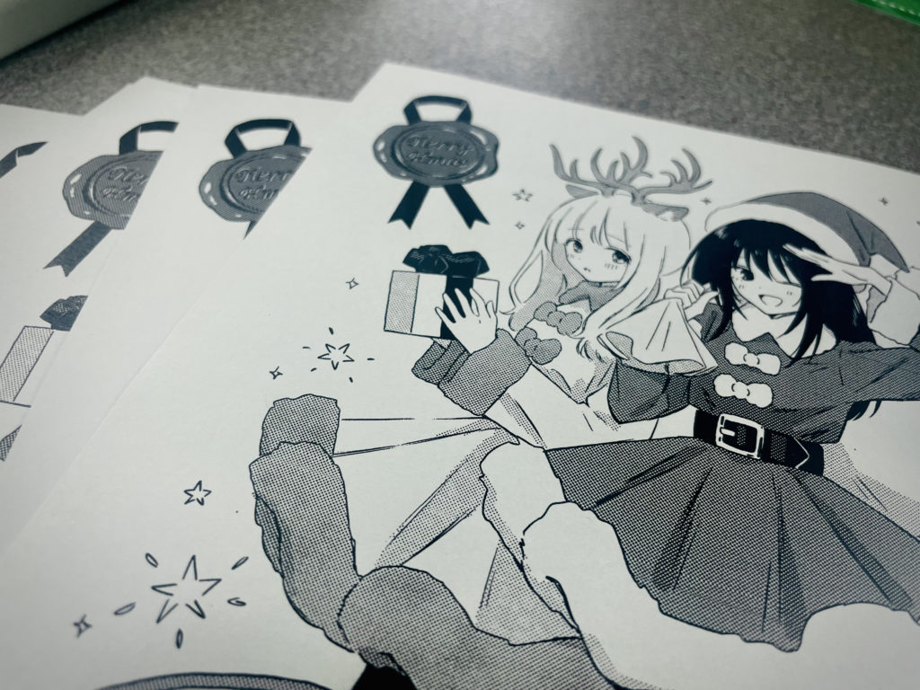 イラスト+雑談のA5のペラっとしたやつです。通販にもつけますね🧑🎄